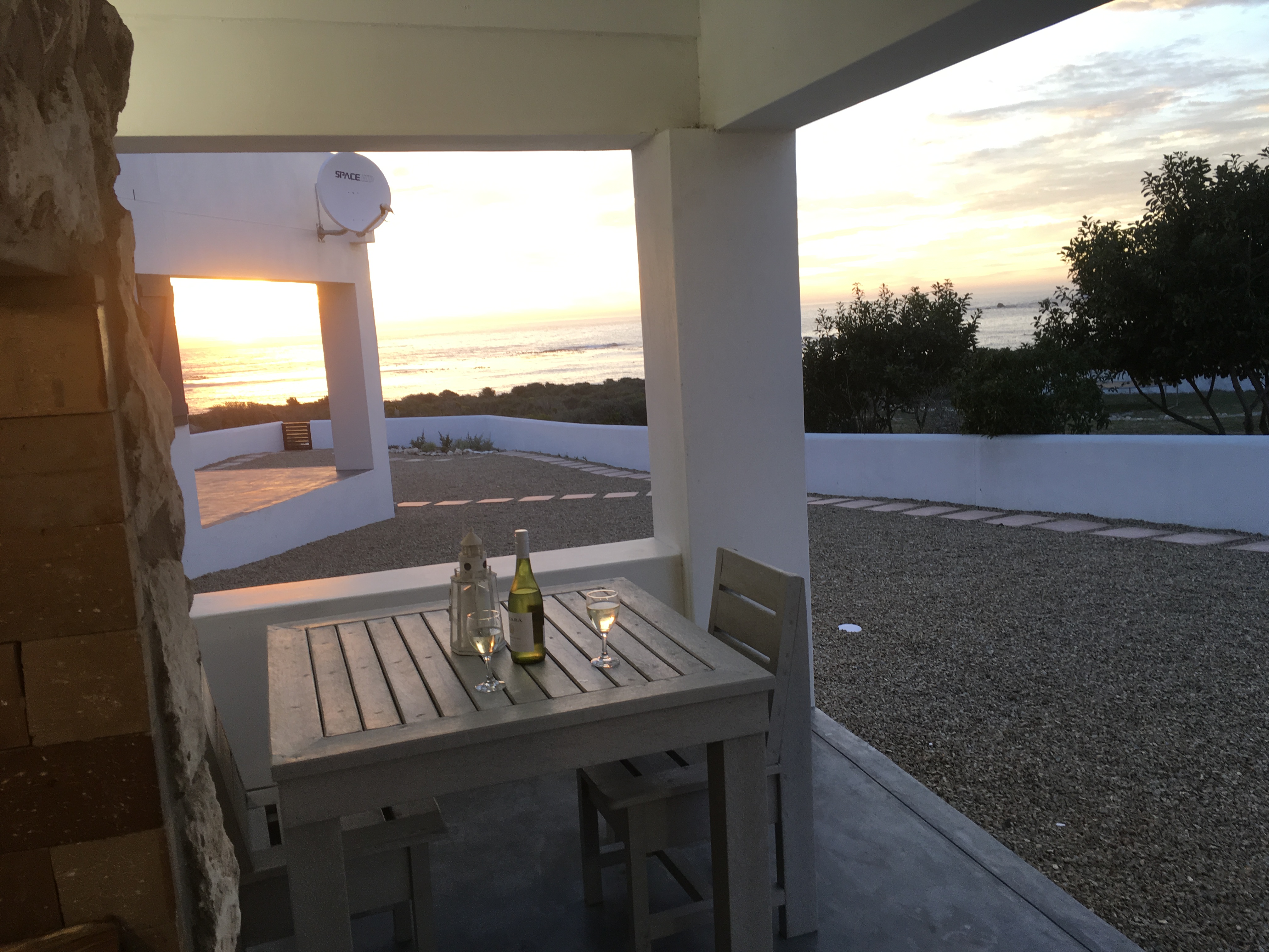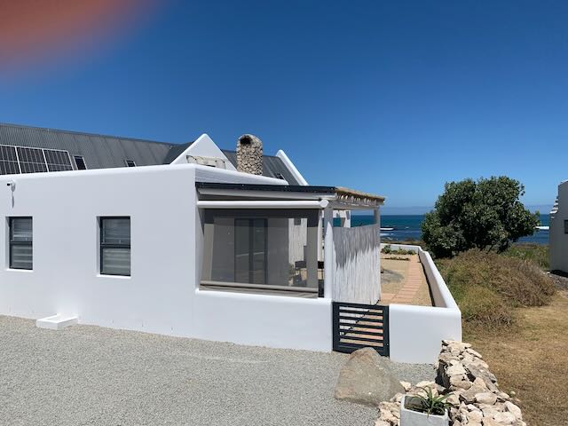 Open plan living areas and a generous under roof patio/stoep with barbecue/braai facilities makes it easy to appreciate the unique setting and enjoy quality leisure time. The patios have magnificent views of the ocean and the rocky bay in front of the house, called Bamboesbaai.